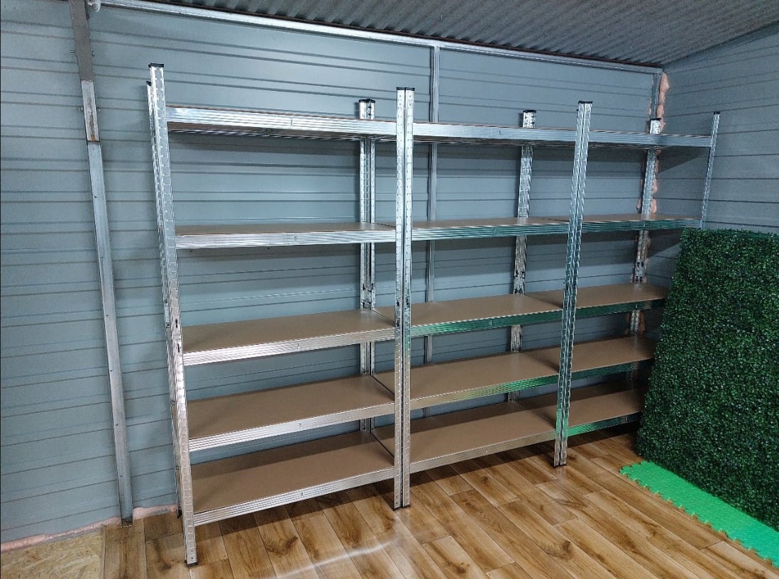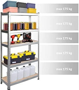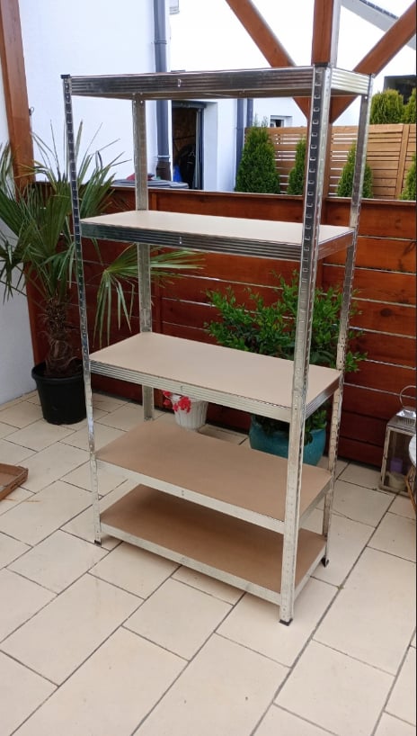 Stelažas sudarytas iš 5 lentynų, ant kurių galite laikyti produktus, dėžes ar įrangą. Maksimali apkrova vienai lentynai – iki 175 kg.